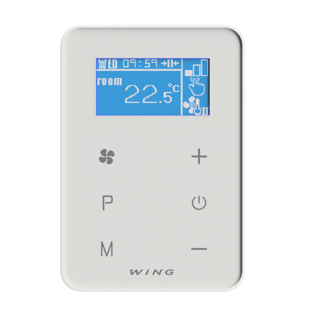 Контроллер, совместная работа с типом электродвигателя ЕС, однофазный, напряжение сети 230 В, диапазон регулировки температуры от +5 до +40 °С, ручной режим работы, датчик измерения температуры встроенный, таймер, график часы/недели, выходной сигнал 0-10 VDC, степень защиты IP 30